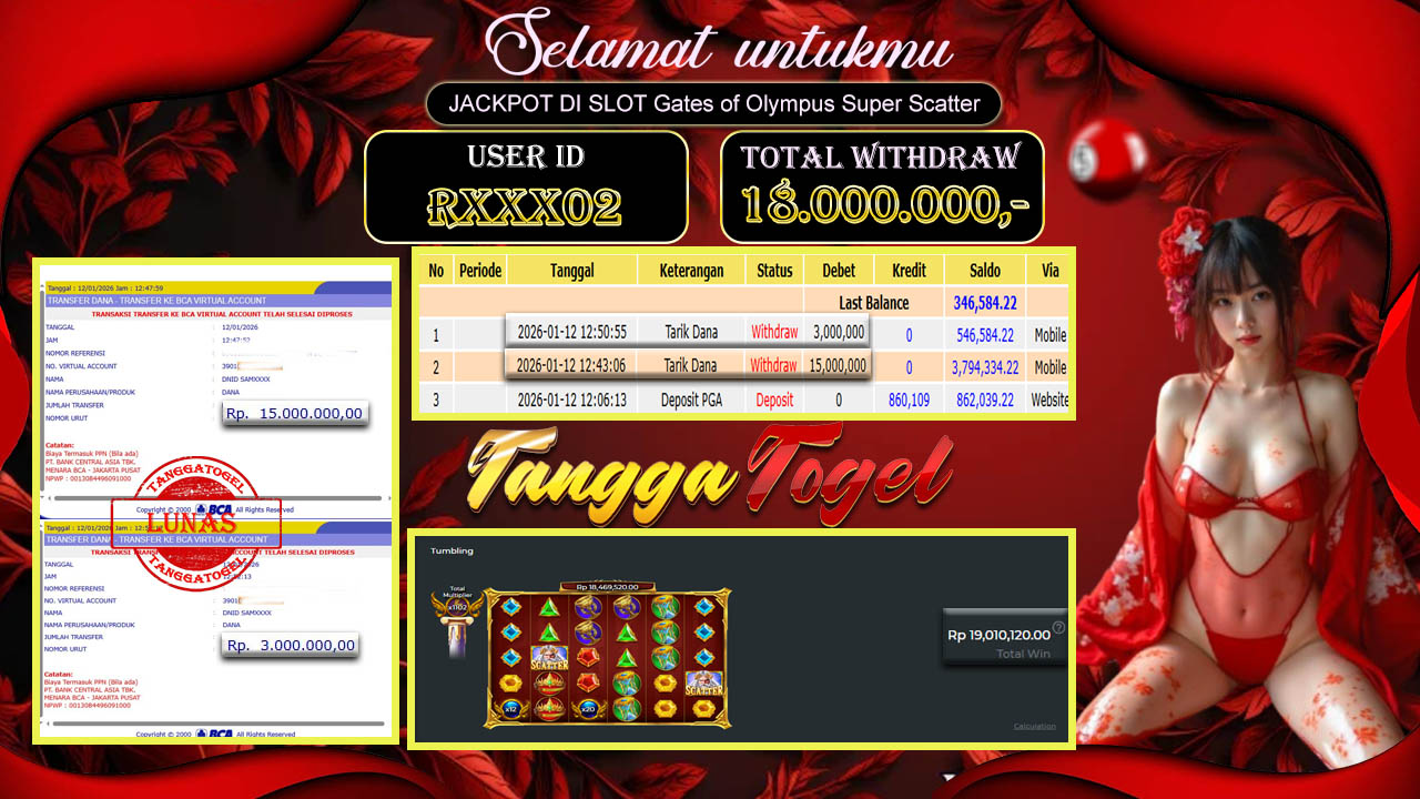 TANGGATOGEL – Bukti Jackpot Slot dengan bangga mengucapkan selamat kepada user ID R****02 pada 12 Desember 2025 yang telah meraih jackpot sebesar Rp 18.000.000,– pada permainan Slot Di Gates Of Olympus Super Scatter . Kemenangan ini telah dibayarkan LUNAS kepada pemilik user ID setelah mengisi formulir withdraw. Proses pencairan dana berlangsung cepat, hanya dalam 2-3 menit, dana sudah tersedia di rekening pemilik user ID. Bukti transfer yang diterima adalah SAH dan VALID, diperoleh langsung dari transaksi bank yang digunakan.